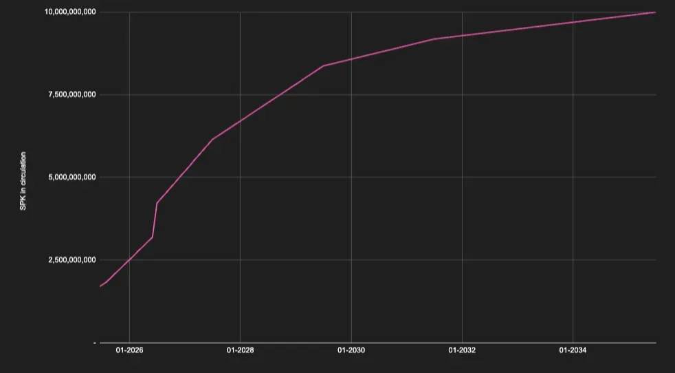 | Team | 12% | 1,200,000,000 SPK | 12-month 25% cliff, then 3-year vesting of remaining 75% | subDAO proxy (controlled by the DAO): 0x3300f198988e4C9C63F75dF86De36421f06af8c4 |