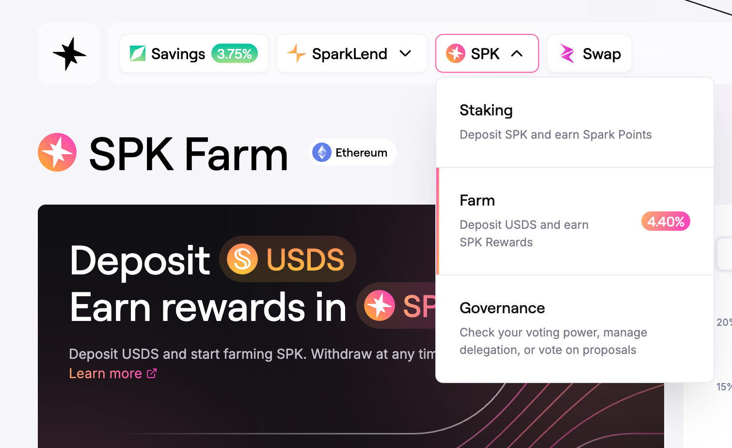 - Navigate to the SPK Farm page by clicking on SPK in the top navigation bar and selecting Farm.