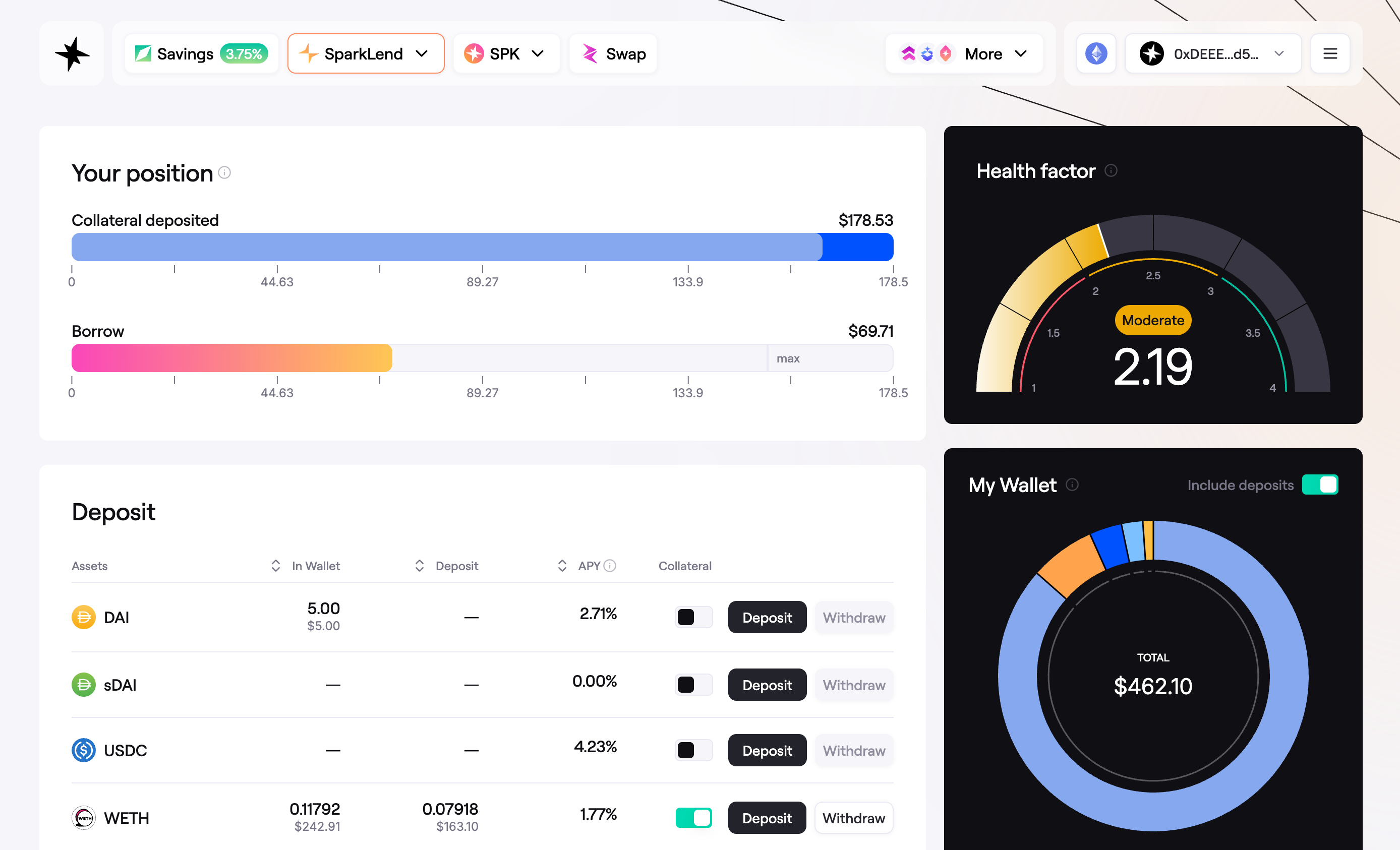 - In the Deposit section you can also enable or disable assets as collateral. Learn about this here.