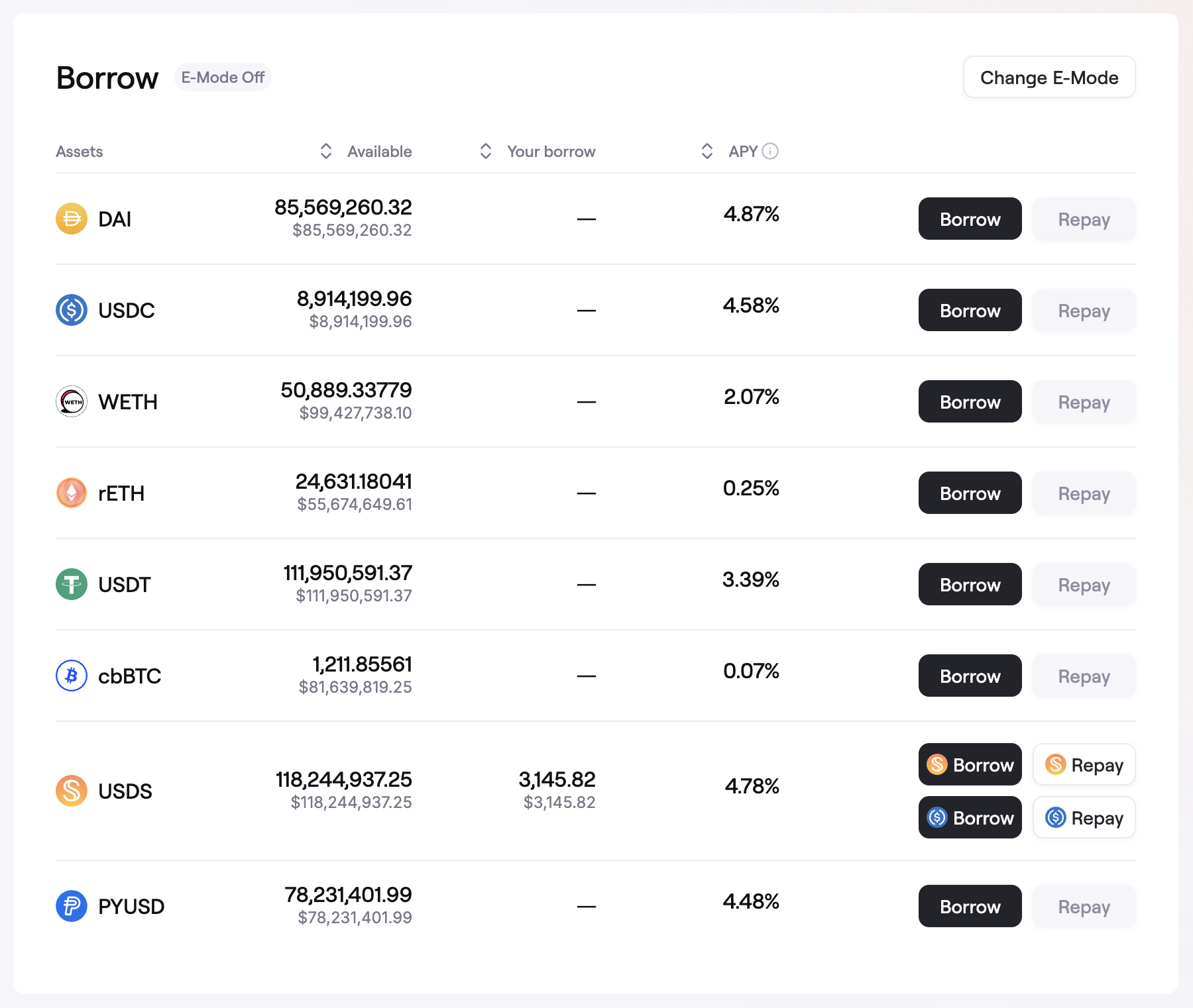 - In the Borrow section you can borrow or repay assets. See the steps here.
